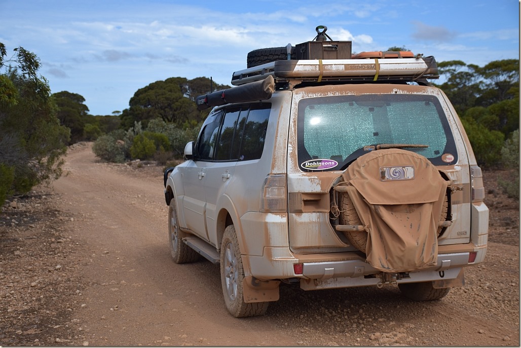 Nearing the end, in the Weebubbie Cave area, the easy to traverse ground changed to limestone rock hopping. Some slow bouncing stretches to navigate. But all was well and at 1415 I poked my nose out just shy of Eucla, without event, but a car absolutely covered in dust from head to toe. I reckon there was an inch of dust coating the back step.